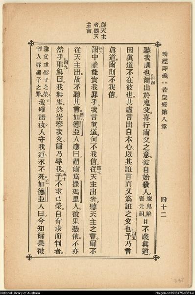 1907年新約四福音(新經譯義) 約翰福音 8 章 43 節到 8 章 52 節