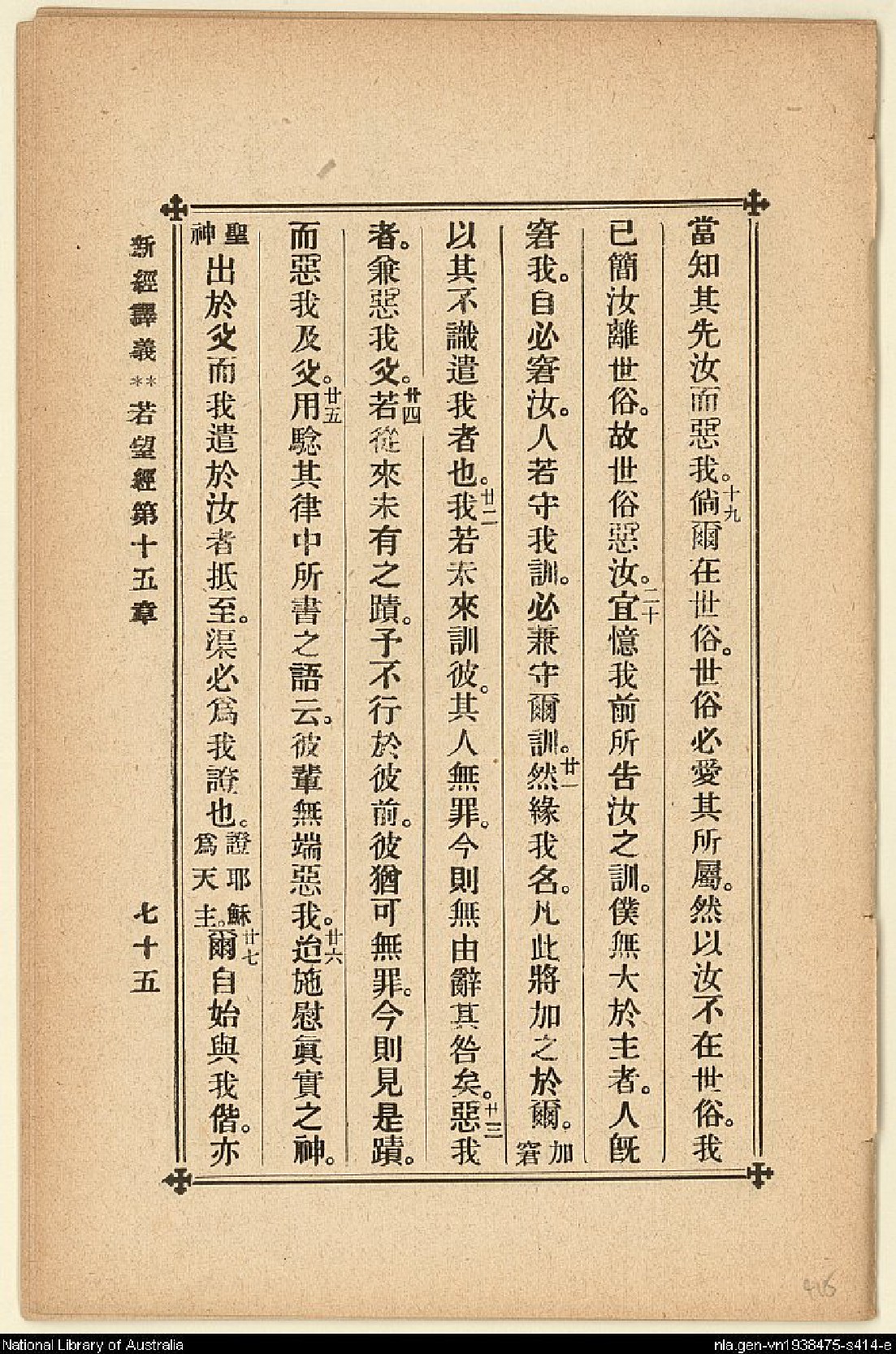 1907年新約四福音(新經譯義) 約翰福音 15 章 18 節到 15 章 27 節