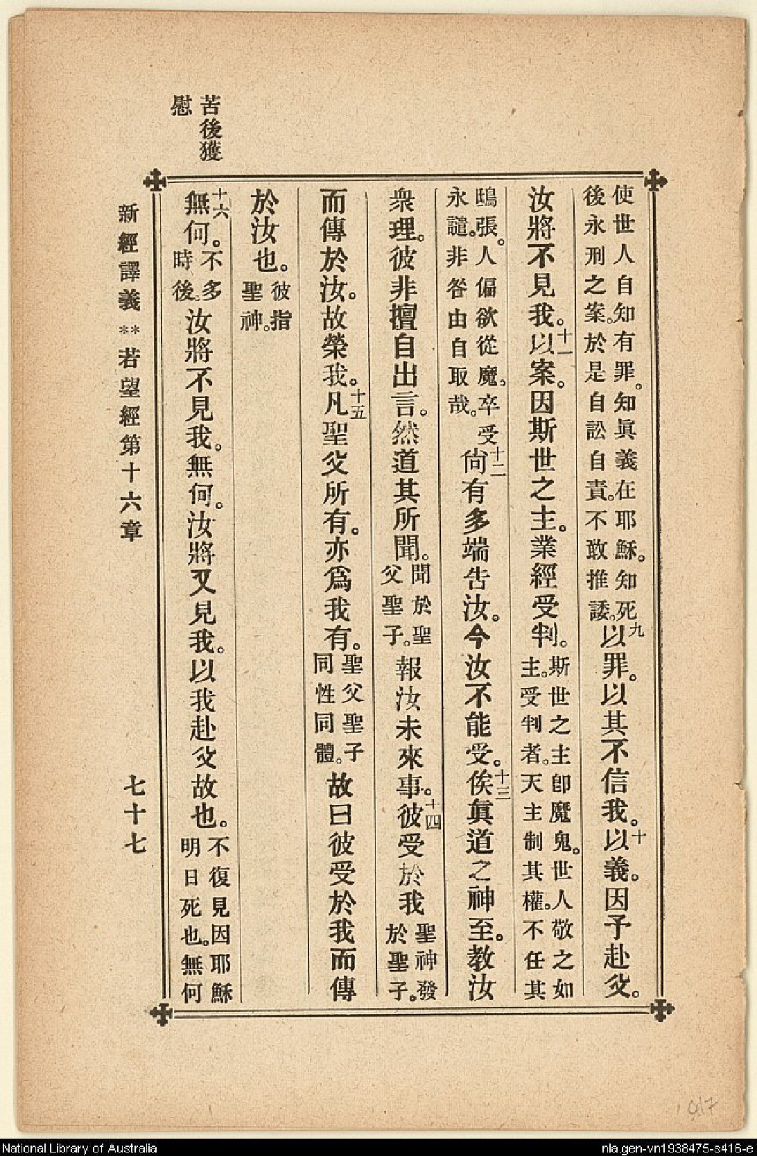 1907年新約四福音(新經譯義) 約翰福音 16 章 8 節到 16 章 16 節
