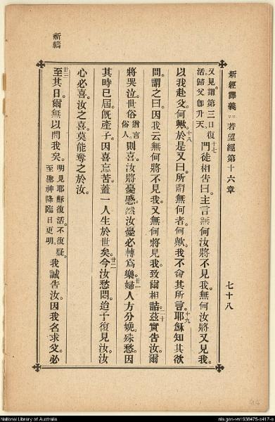 1907年新約四福音(新經譯義) 約翰福音 16 章 16 節到 16 章 23 節