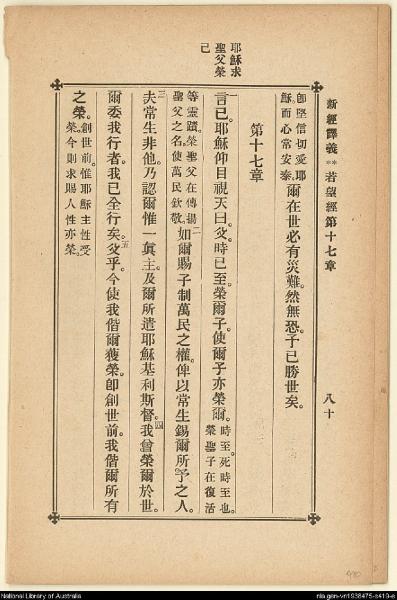 1907年新約四福音(新經譯義) 約翰福音 16 章 33 節到 17 章 5 節