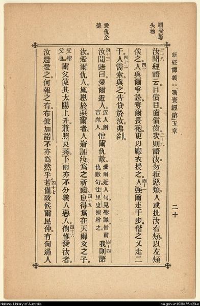 1907年新約四福音(新經譯義) 馬太福音 5 章 38 節到 5 章 47 節