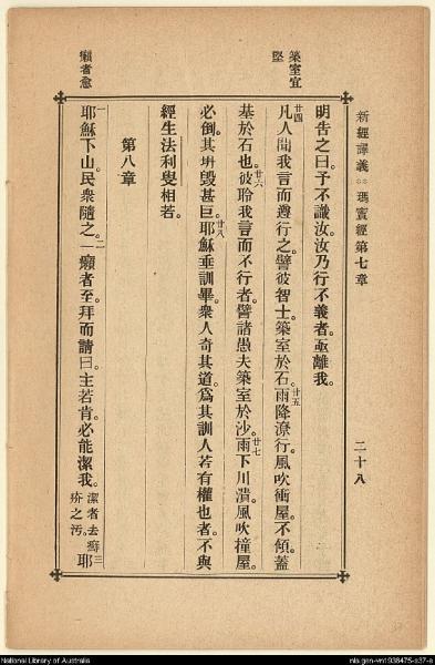 1907年新約四福音(新經譯義) 馬太福音 7 章 23 節到 8 章 3 節