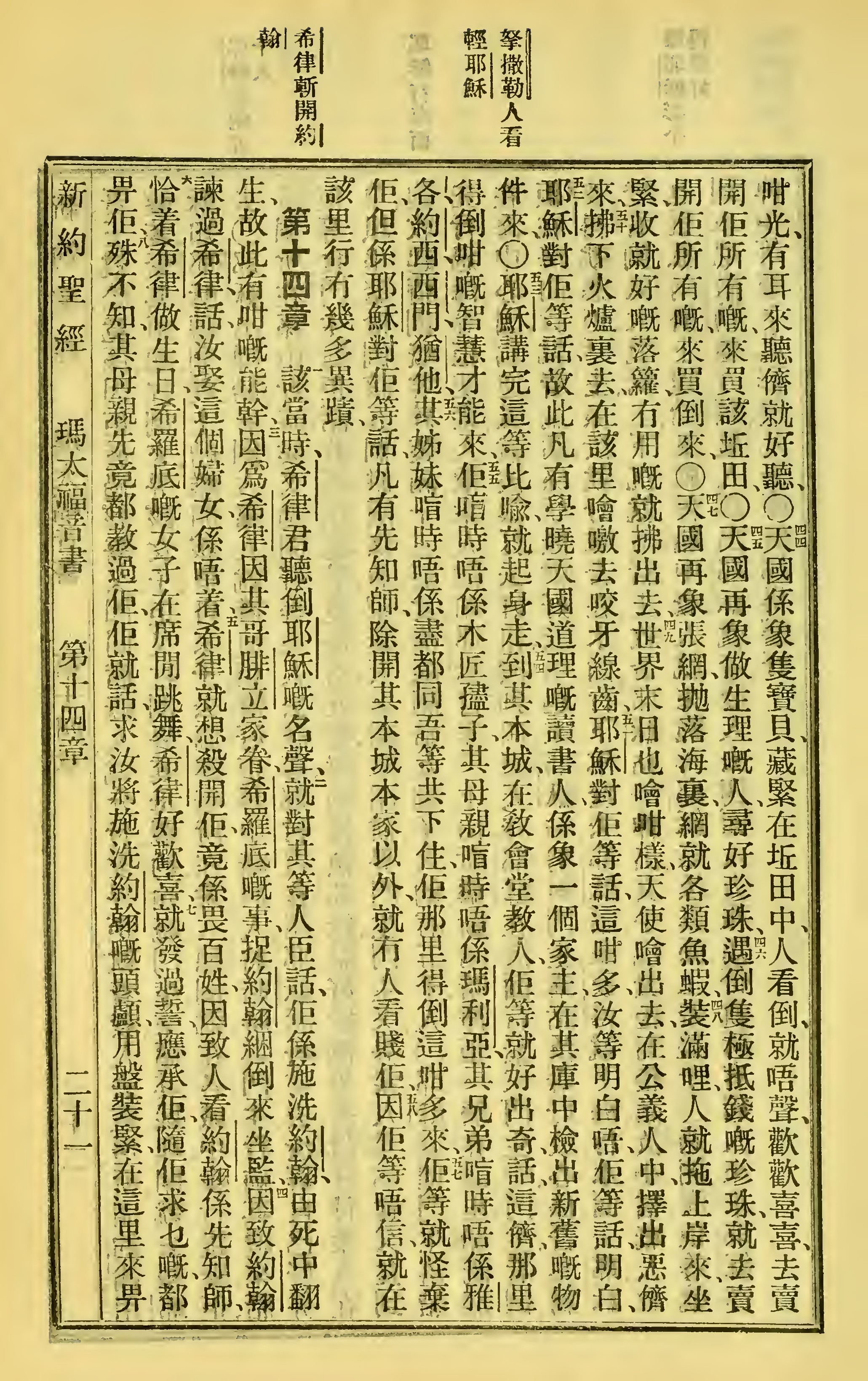 1923年聖經全書 馬太福音 13 章 44 節到 14 章 8 節