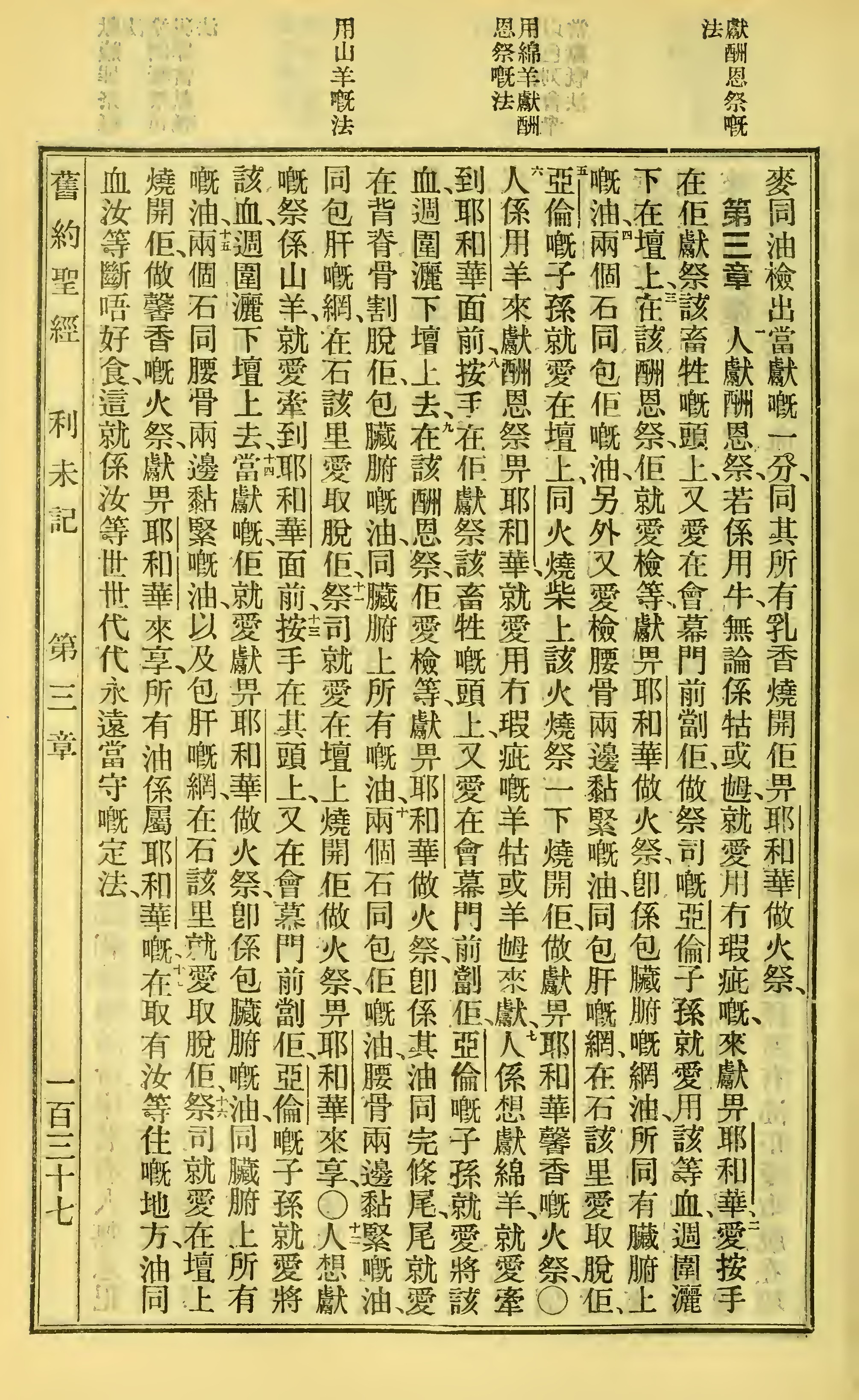1923年聖經全書 利未記 3 章 1 節到 3 章 17 節