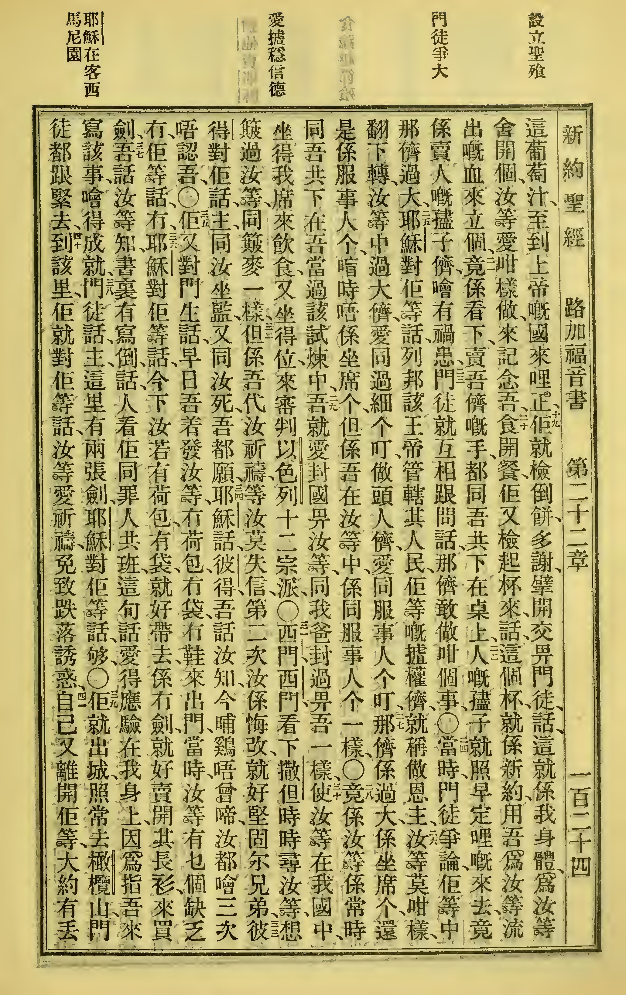 1923年聖經全書 路加福音 22 章 19 節到 22 章 41 節