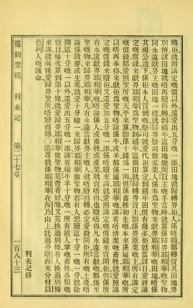 1923年聖經全書 利未記 27 章 20 節到 27 章 34 節