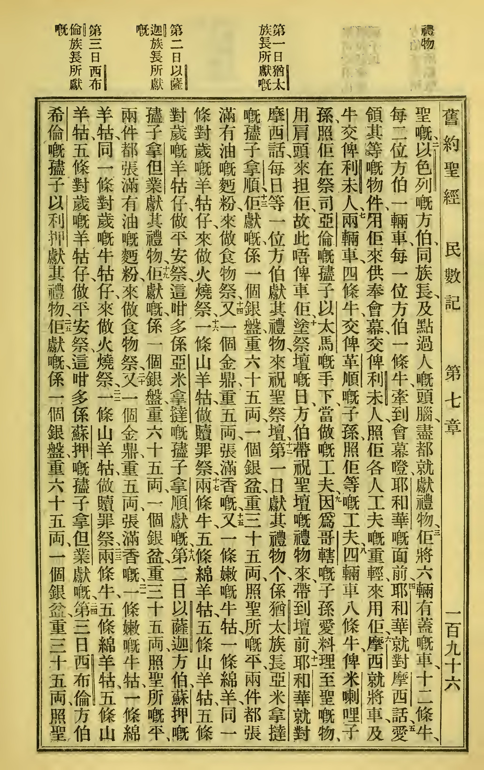 1923年聖經全書 民數記 7 章 2 節到 7 章 25 節