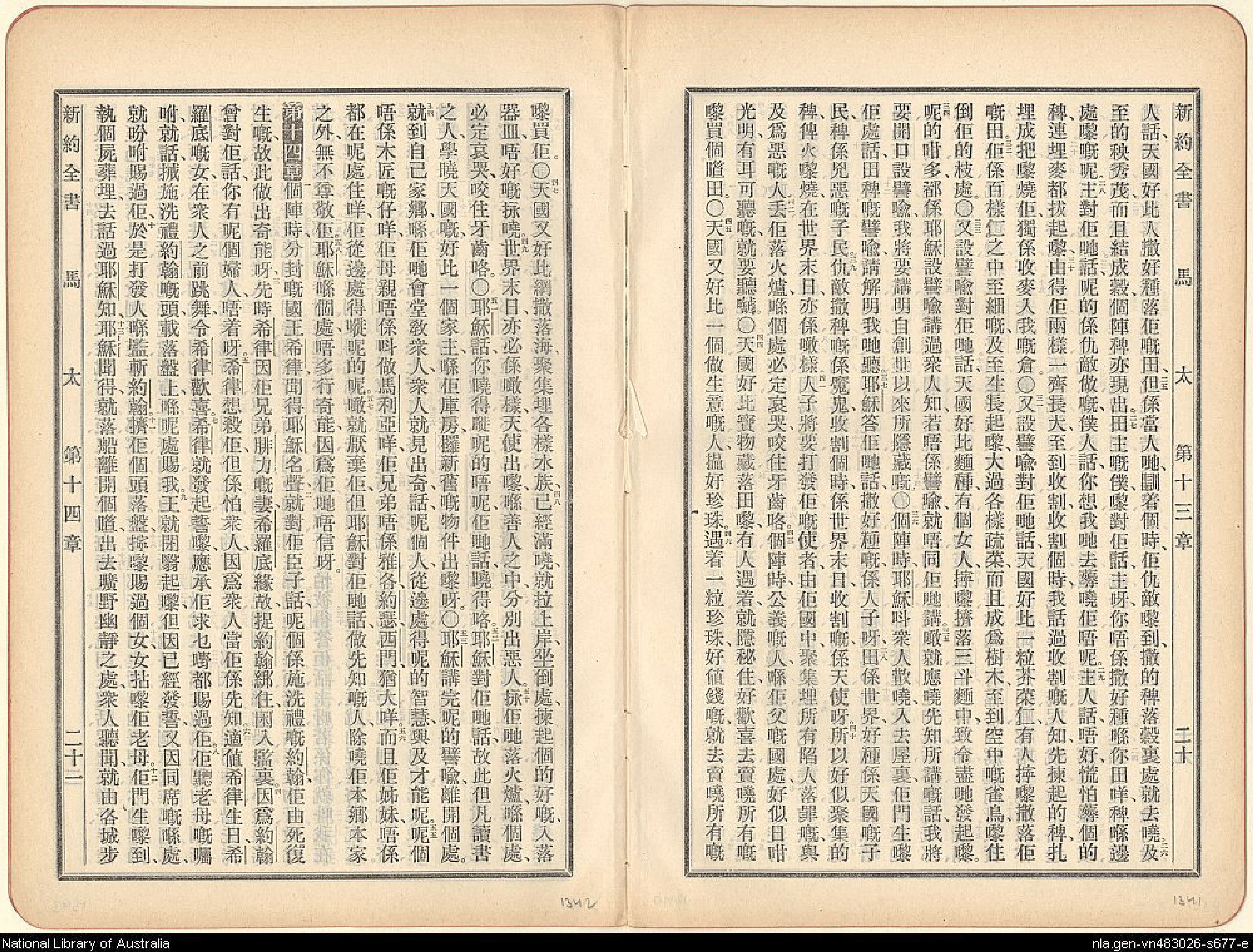 1907年新舊約全書 馬太福音 13 章 25 節到 14 章 13 節
