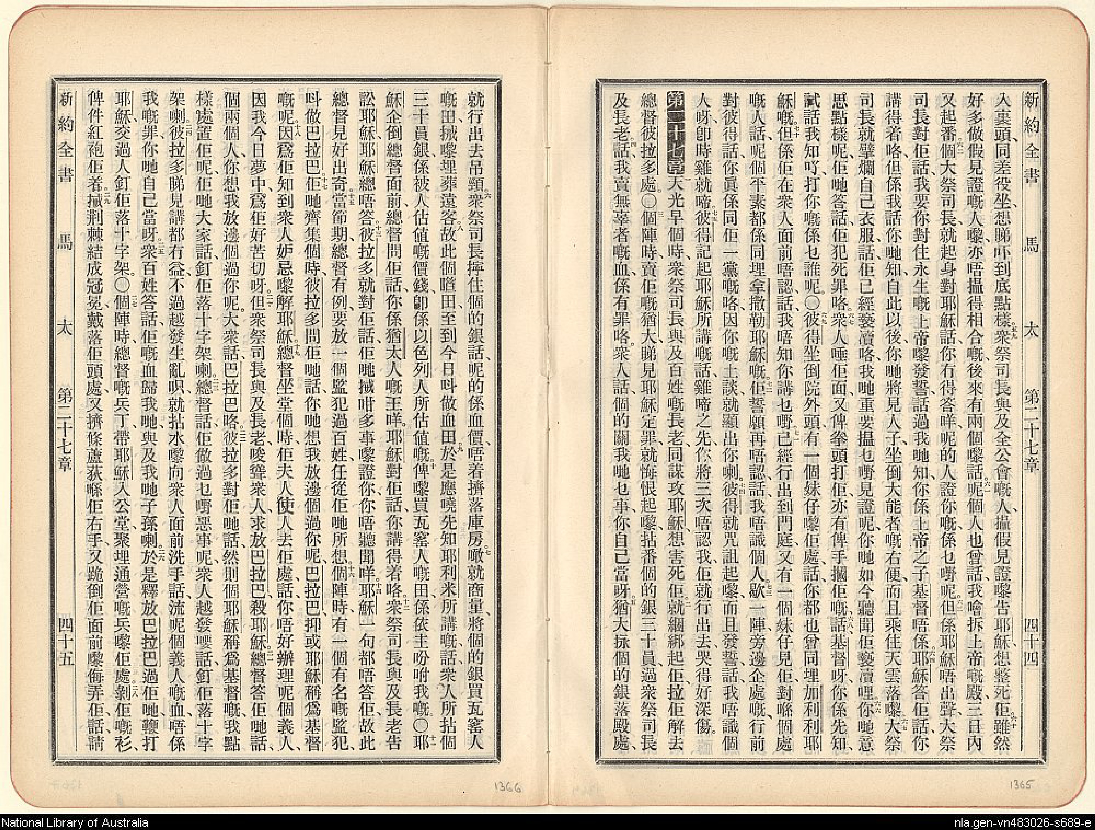 1907年新舊約全書 馬太福音 26 章 59 節到 27 章 29 節