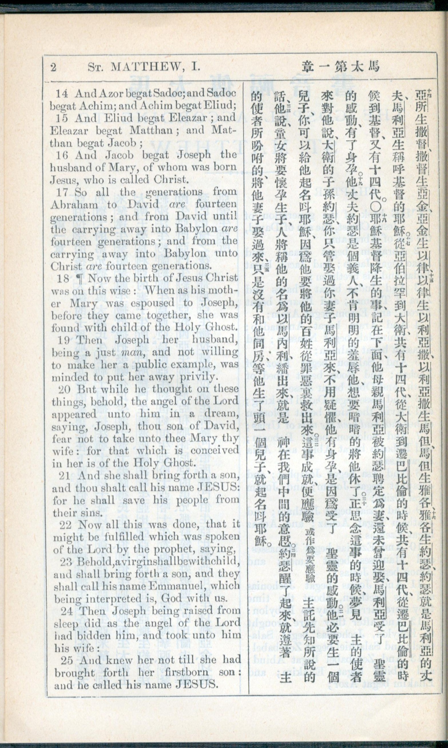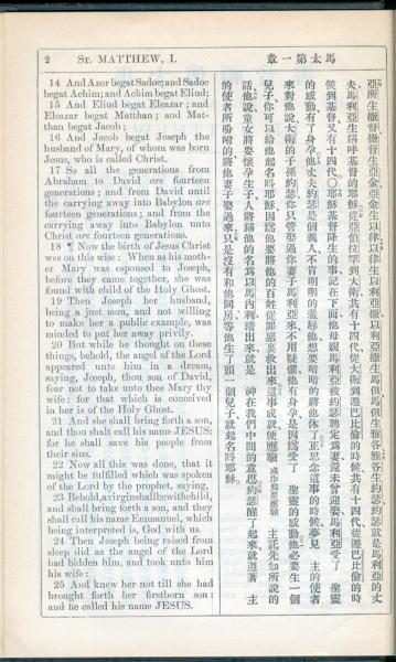 1908年新約全書(中西字) 馬太福音 1 章 14 節到 1 章 25 節