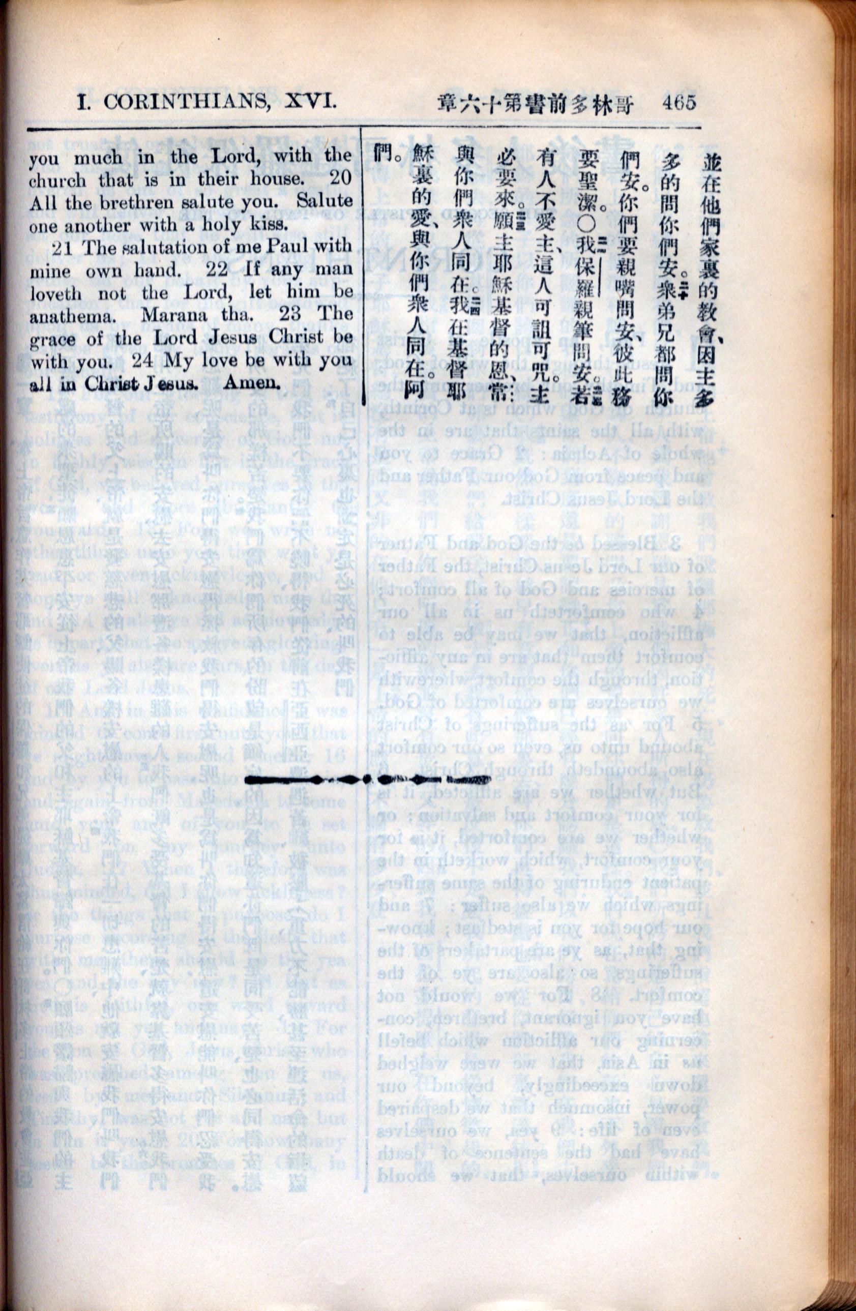 1936年新約全書 哥林多前書 16 章 20 節到 16 章 24 節