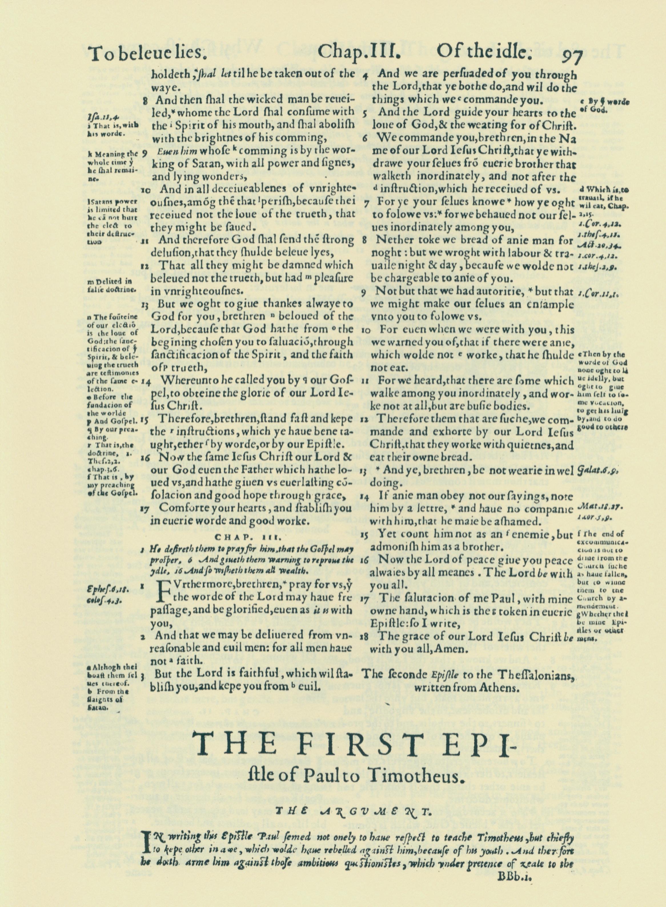 1560年THE BIBLE AND HOLY SCRIPTURES 帖撒羅尼迦後書 2 章 8 節到 3 章 18 節