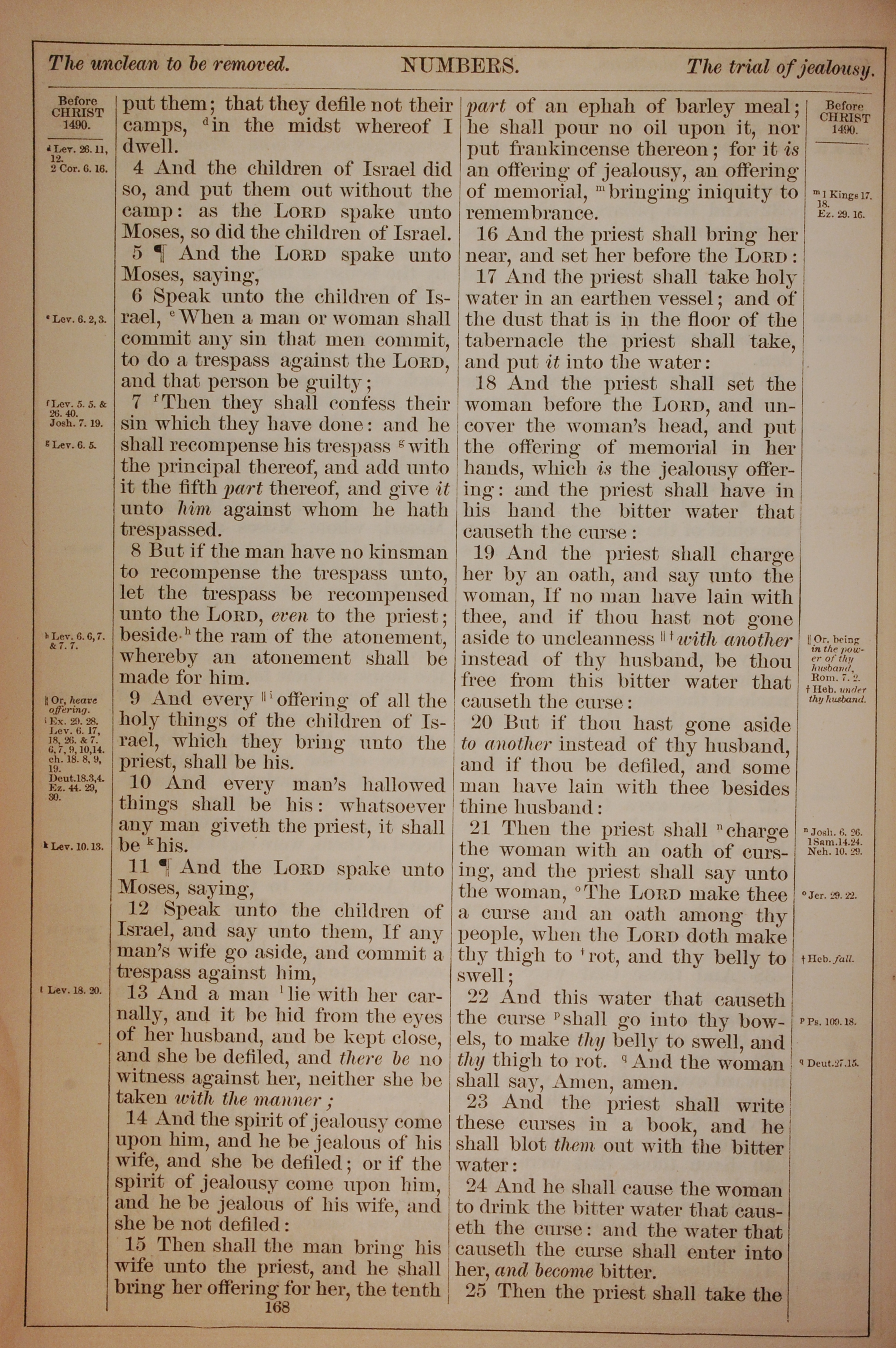 1882年Holy Bible 民數記 5 章 4 節到 5 章 25 節