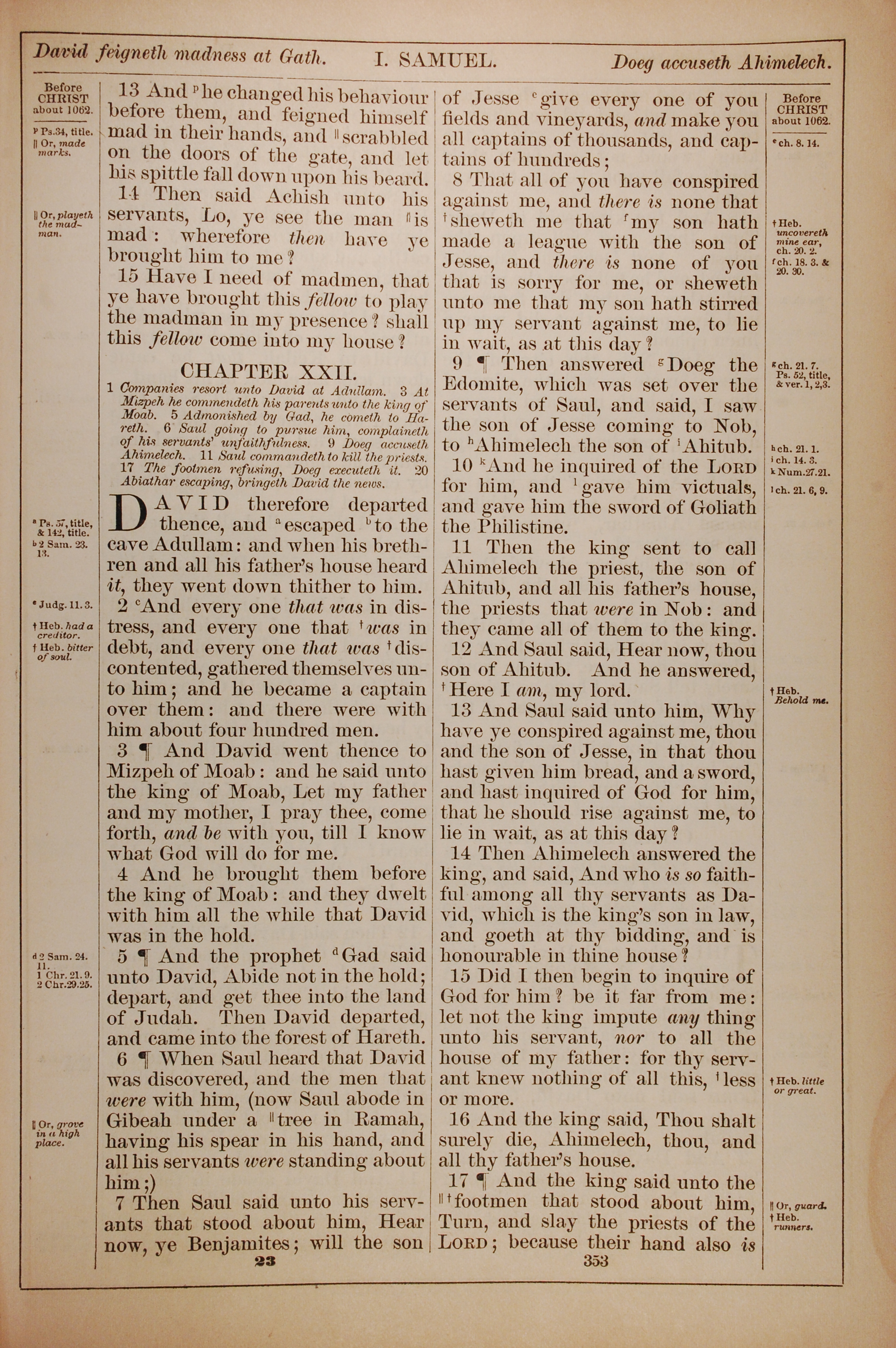 1882年Holy Bible 撒母耳記上 21 章 13 節到 22 章 17 節