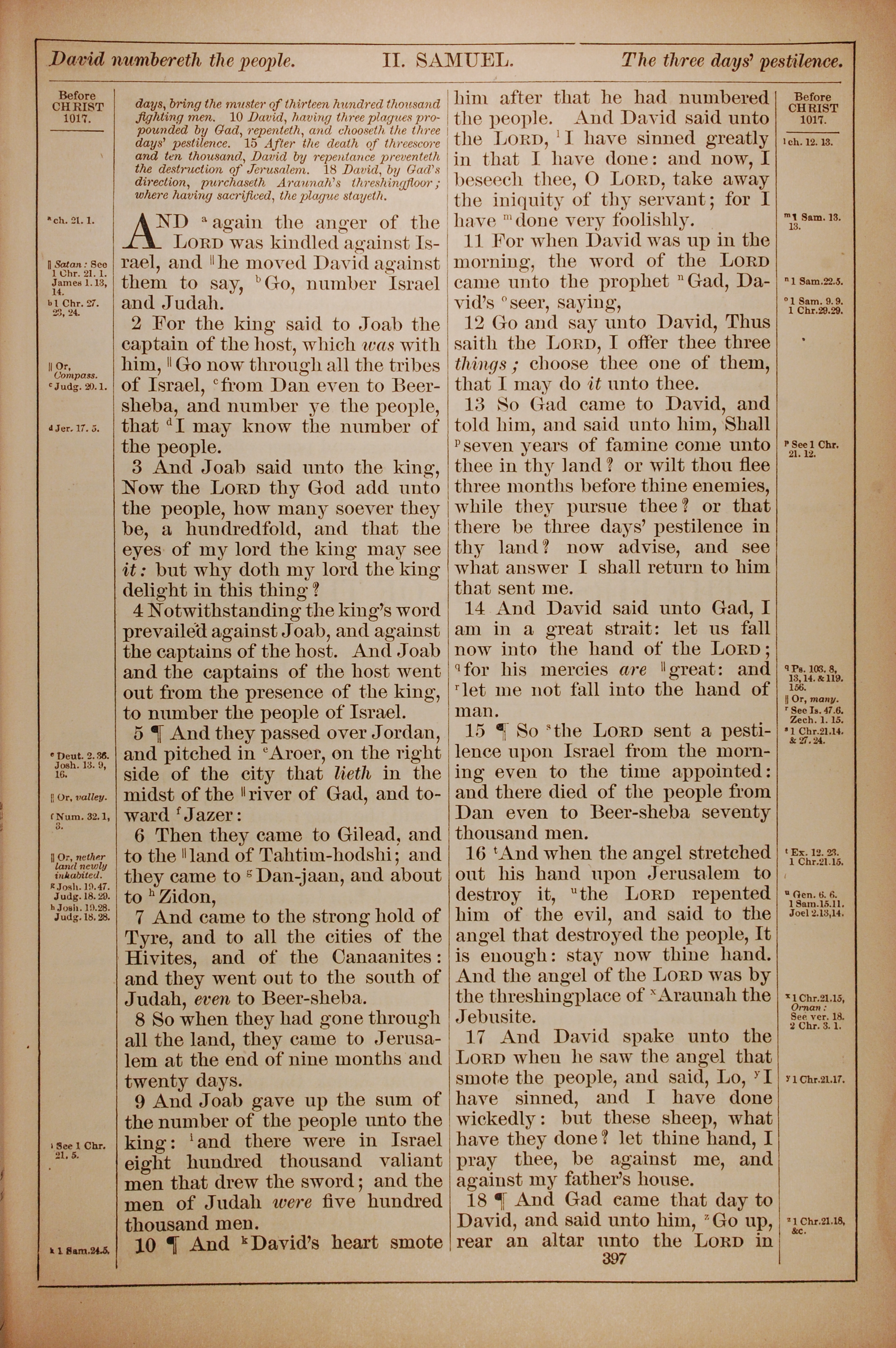 1882年Holy Bible 撒母耳記下 24 章 1 節到 24 章 18 節