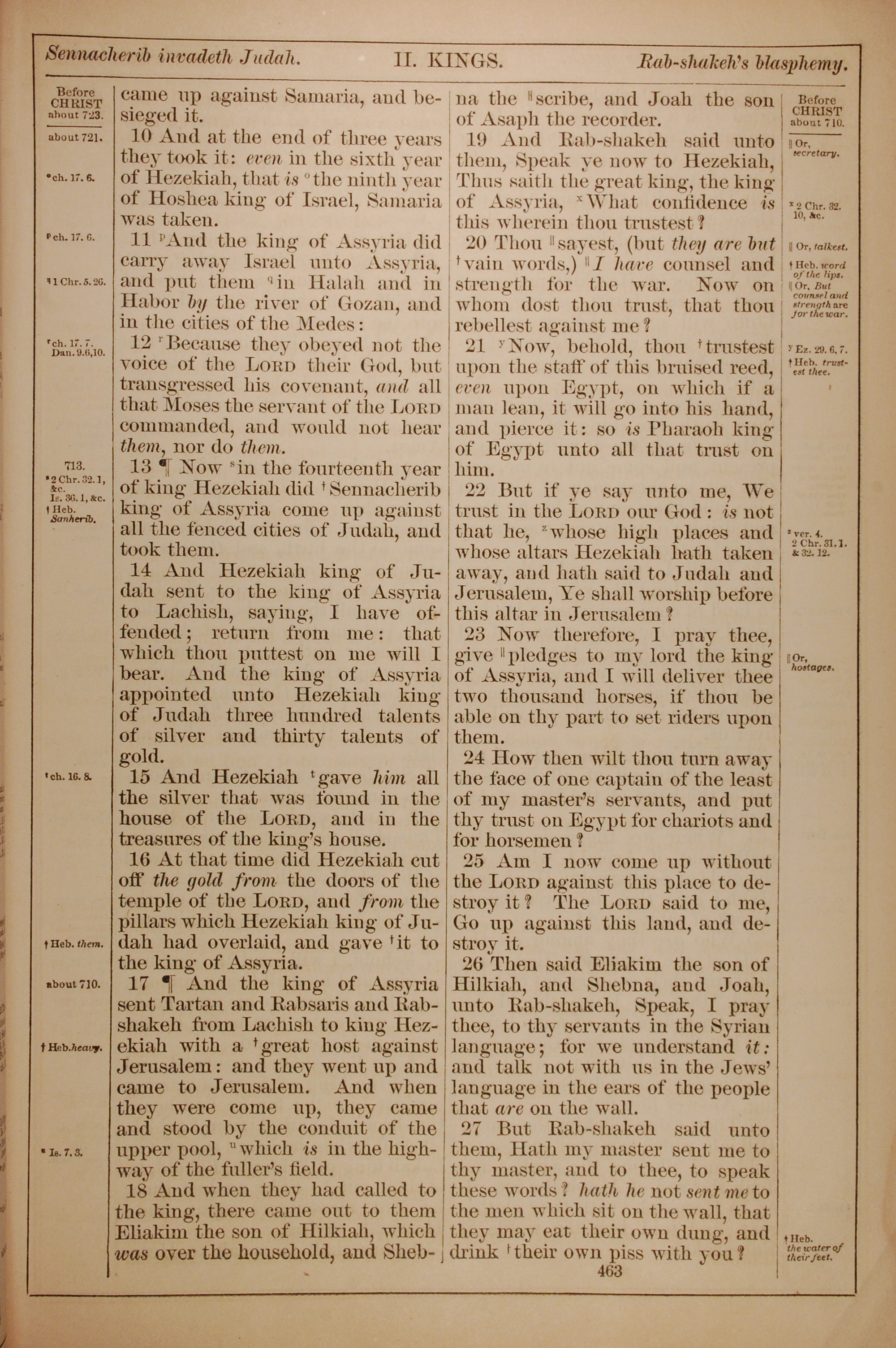 1882年Holy Bible 列王紀下 18 章 10 節到 18 章 27 節