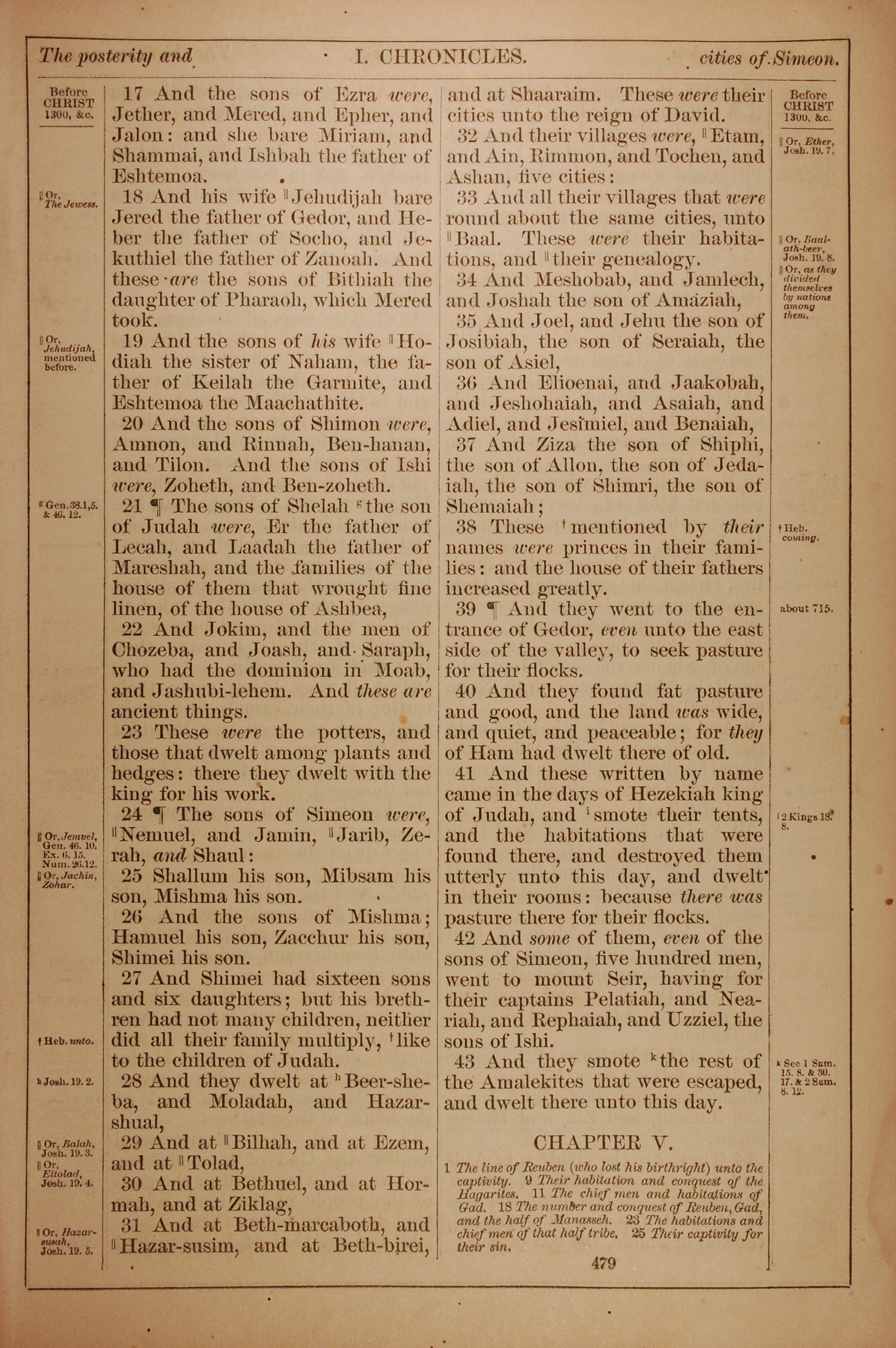1882年Holy Bible 歷代志上 4 章 17 節到 4 章 43 節