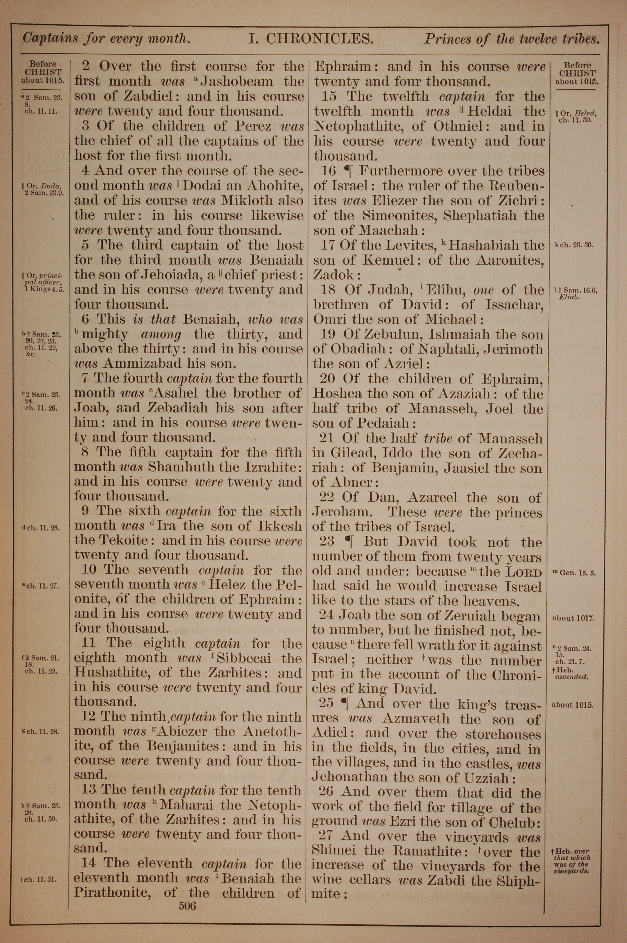 1882年Holy Bible 歷代志上 27 章 2 節到 27 章 27 節
