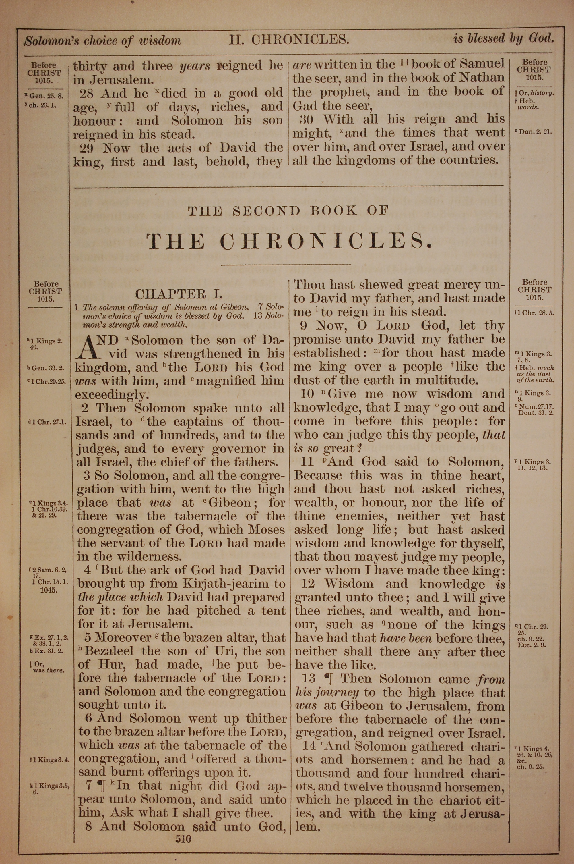 1882年Holy Bible 歷代志下 1 章 1 節到 1 章 14 節