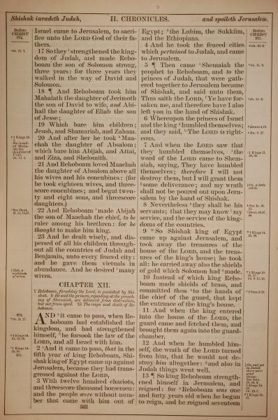 1882年Holy Bible 歷代志下 11 章 17 節到 12 章 13 節