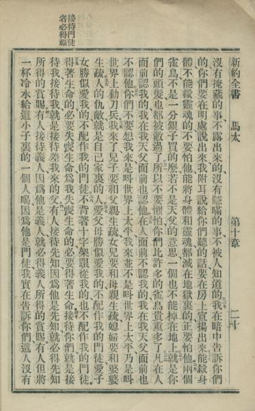 1902年新約全書 馬太福音 10 章 27 節到 10 章 42 節