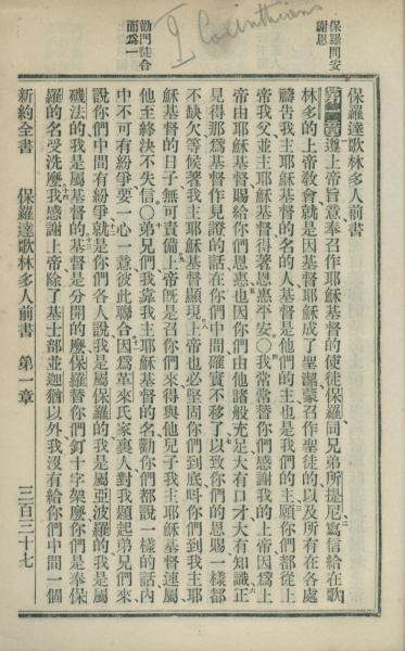 1902年新約全書 哥林多前書 1 章 1 節到 1 章 14 節
