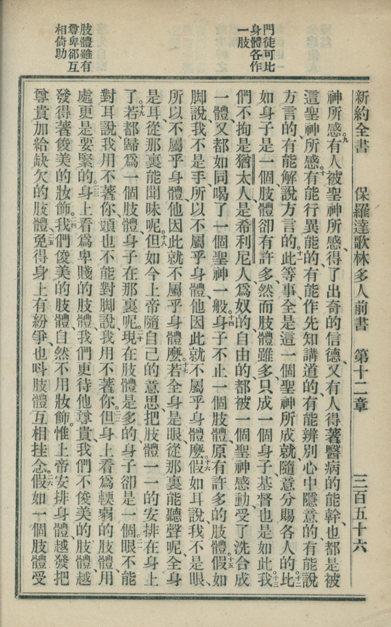 1902年新約全書 哥林多前書 12 章 9 節到 12 章 25 節