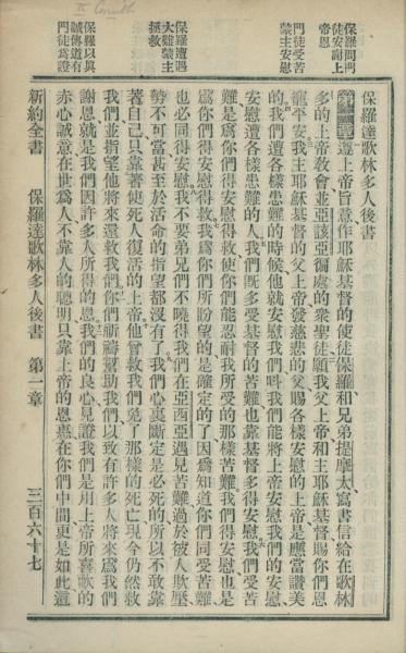 1902年新約全書 哥林多後書 1 章 1 節到 1 章 12 節
