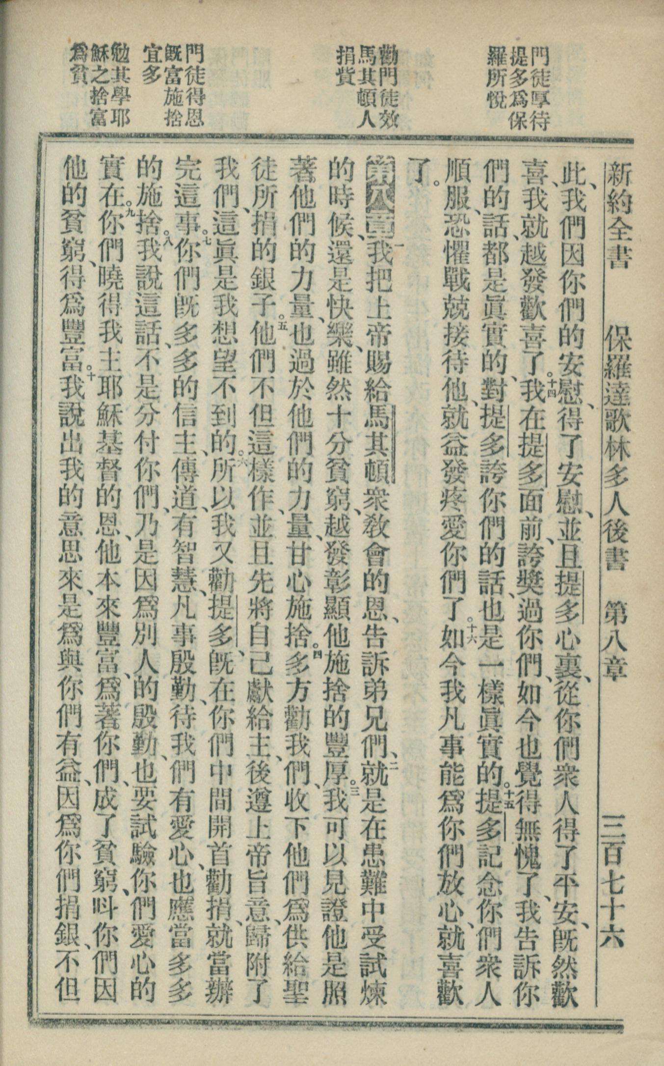1902年新約全書 哥林多後書 7 章 13 節到 8 章 10 節
