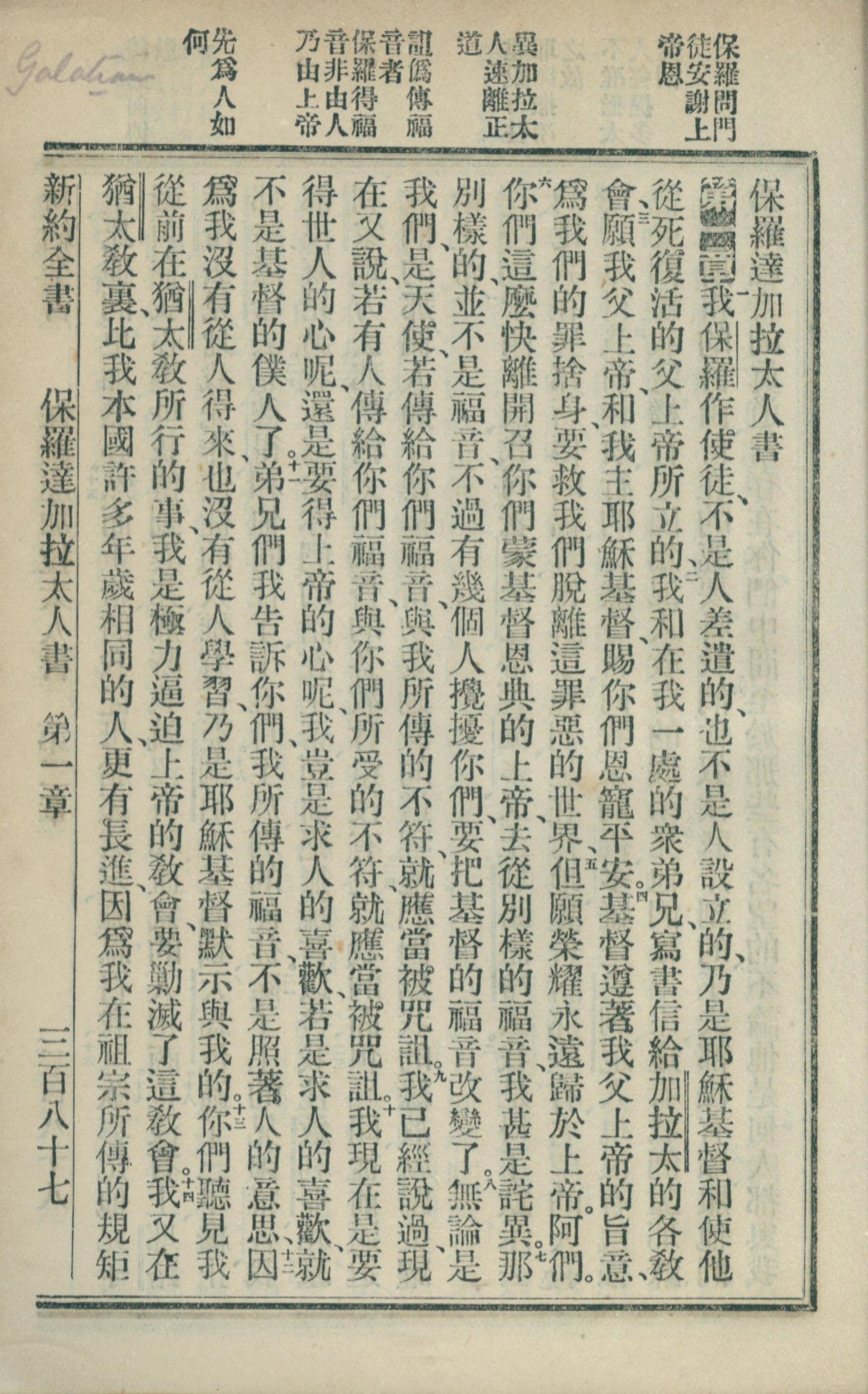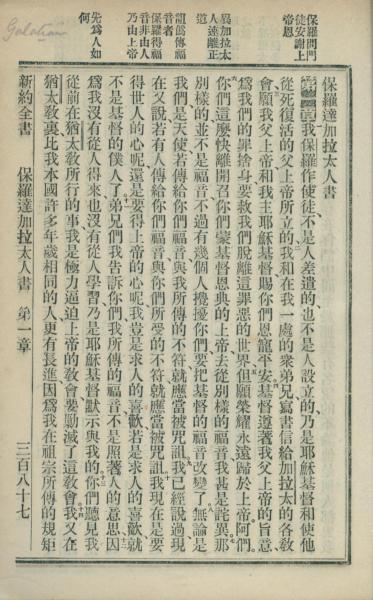 1902年新約全書 加拉太書 1 章 1 節到 1 章 14 節