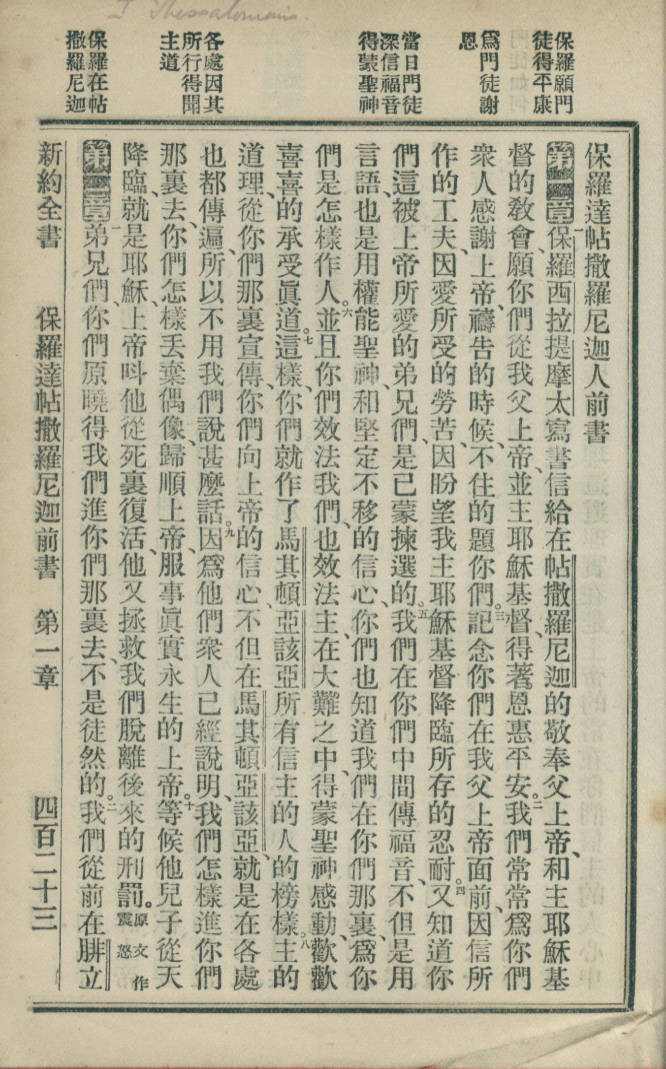 1902年新約全書 帖撒羅尼迦前書 1 章 1 節到 2 章 1 節