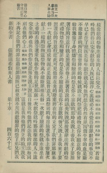 1902年新約全書 希伯來書 10 章 2 節到 10 章 19 節