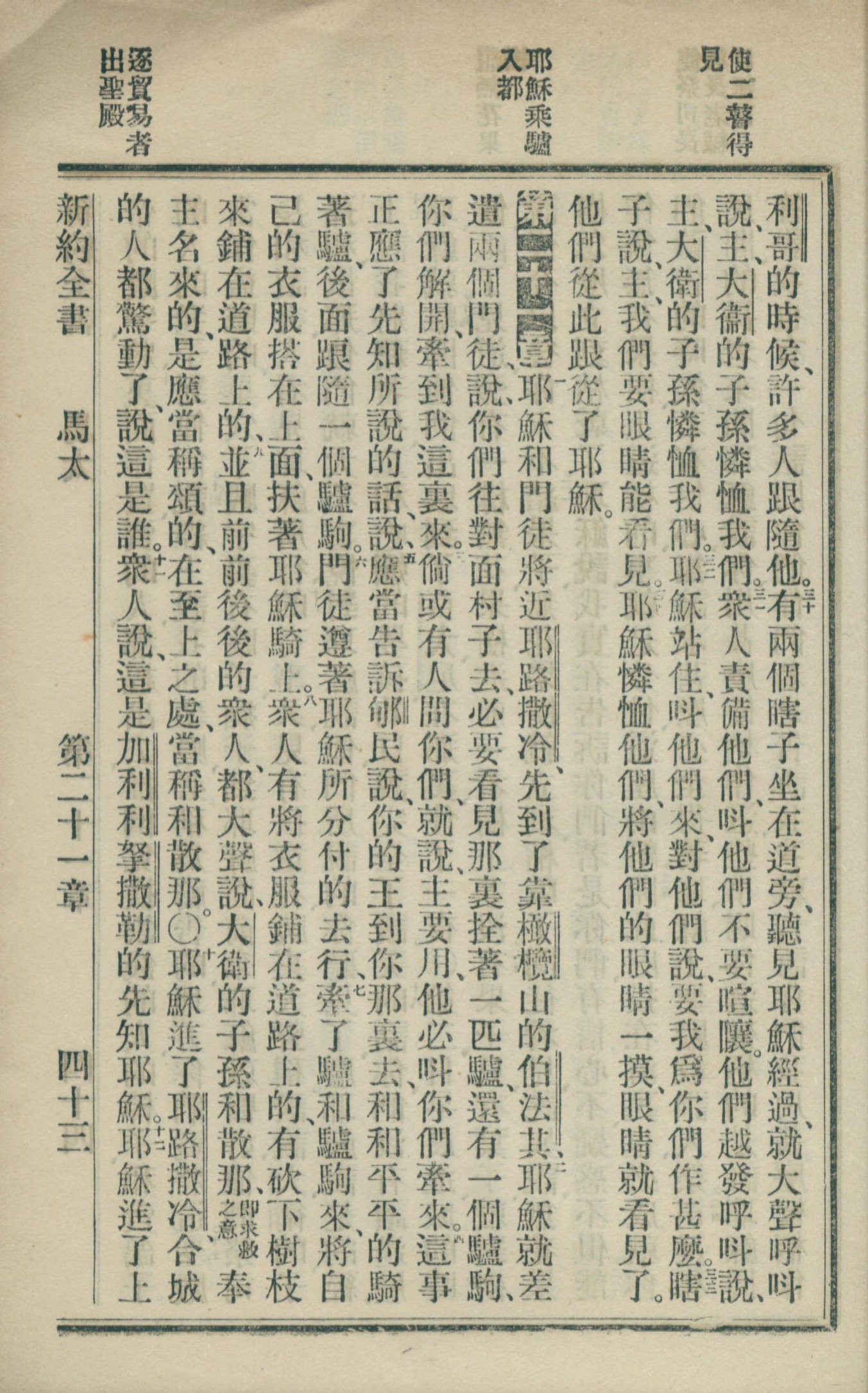 1902年新約全書 馬太福音 20 章 29 節到 21 章 11 節