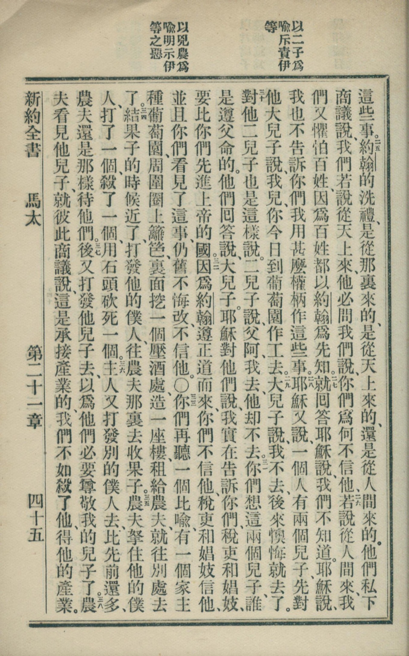 1902年新約全書 馬太福音 21 章 25 節到 21 章 38 節