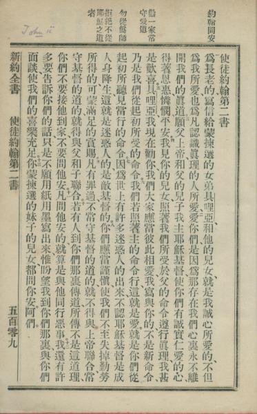 1902年新約全書 約翰二書 1 章 1 節到 1 章 13 節
