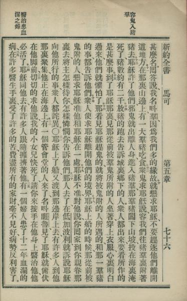 1902年新約全書 馬可福音 5 章 10 節到 5 章 26 節
