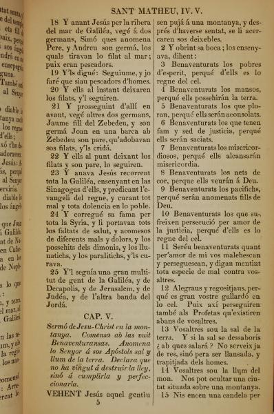 1835年加泰羅尼亞語新約全書 馬太福音 4 章 18 節到 5 章 15 節