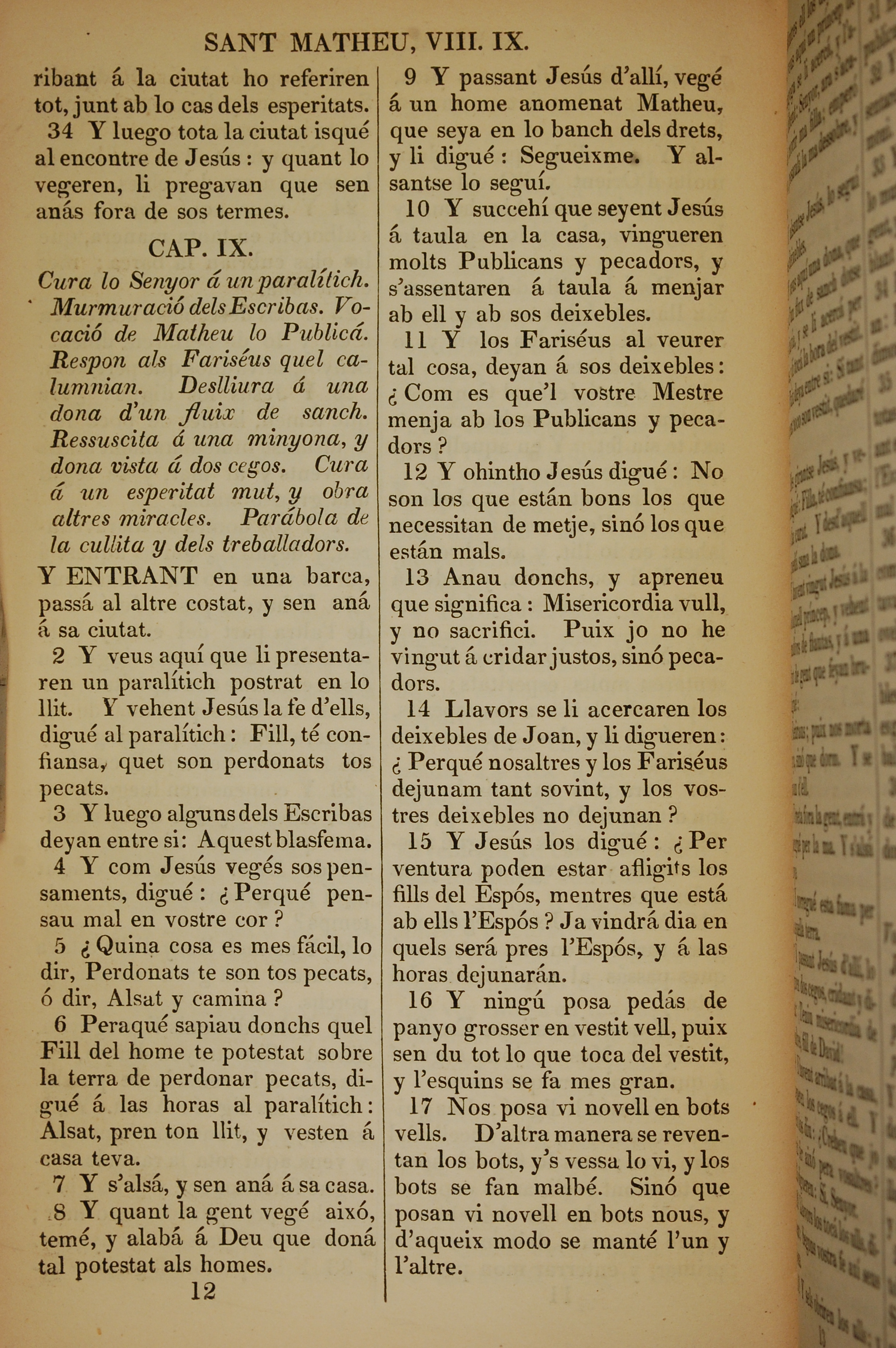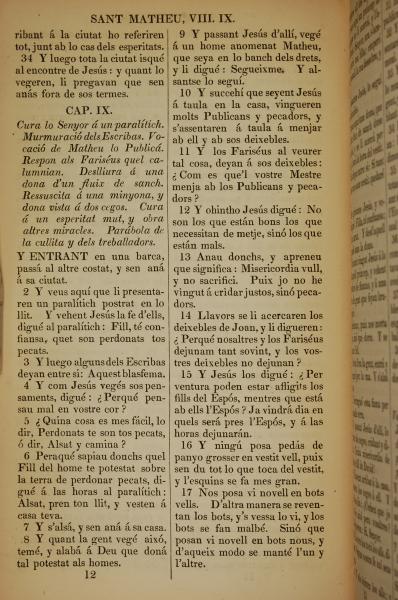 1835年加泰羅尼亞語新約全書 馬太福音 8 章 34 節到 9 章 17 節