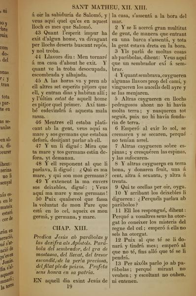 1835年加泰羅尼亞語新約全書 馬太福音 12 章 43 節到 13 章 13 節