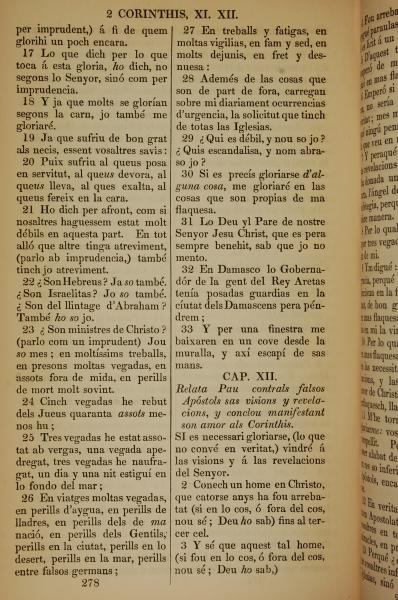 1835年加泰羅尼亞語新約全書 哥林多後書 11 章 17 節到 12 章 3 節