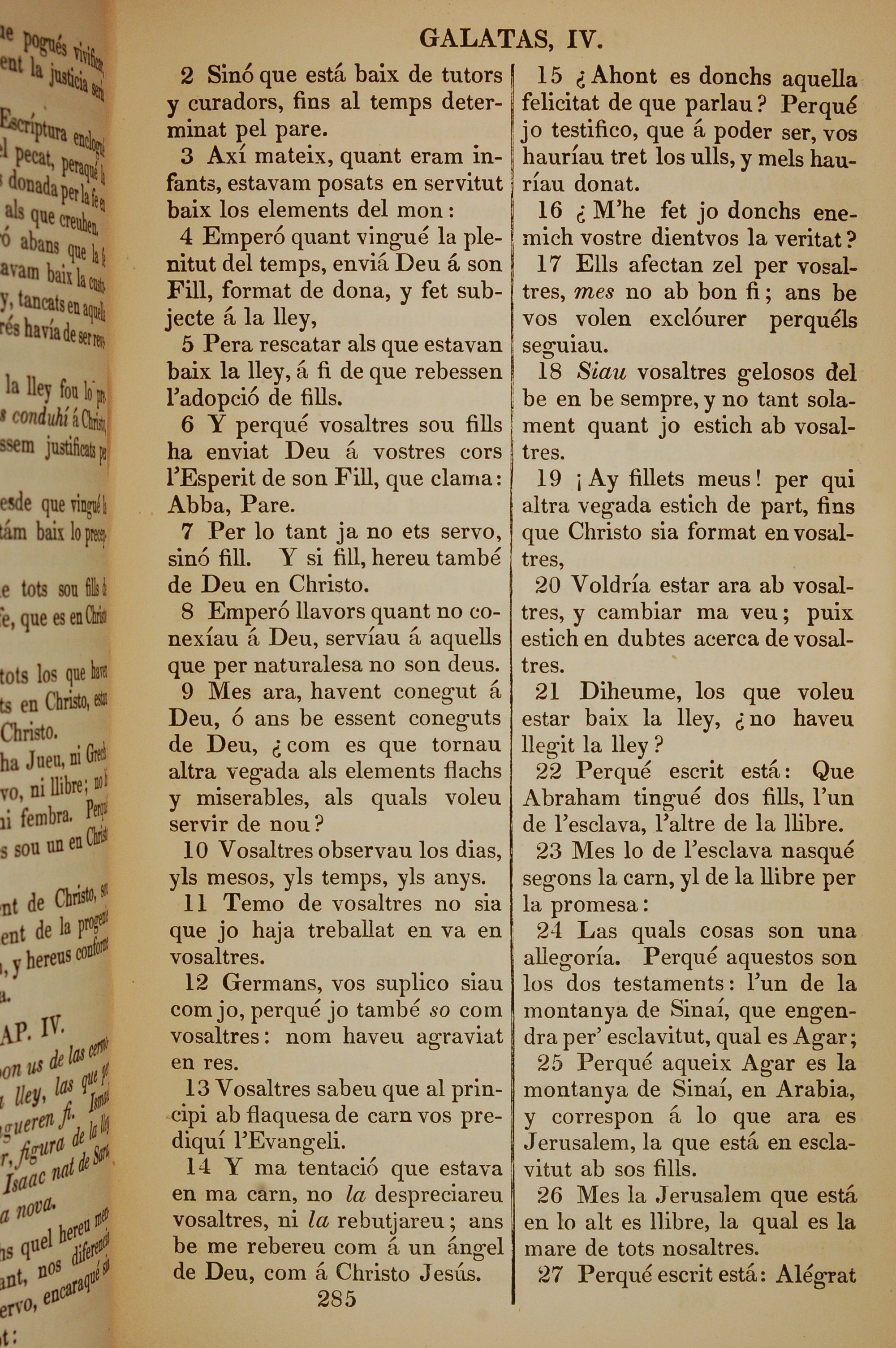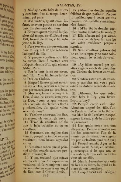 1835年加泰羅尼亞語新約全書 加拉太書 4 章 2 節到 4 章 27 節