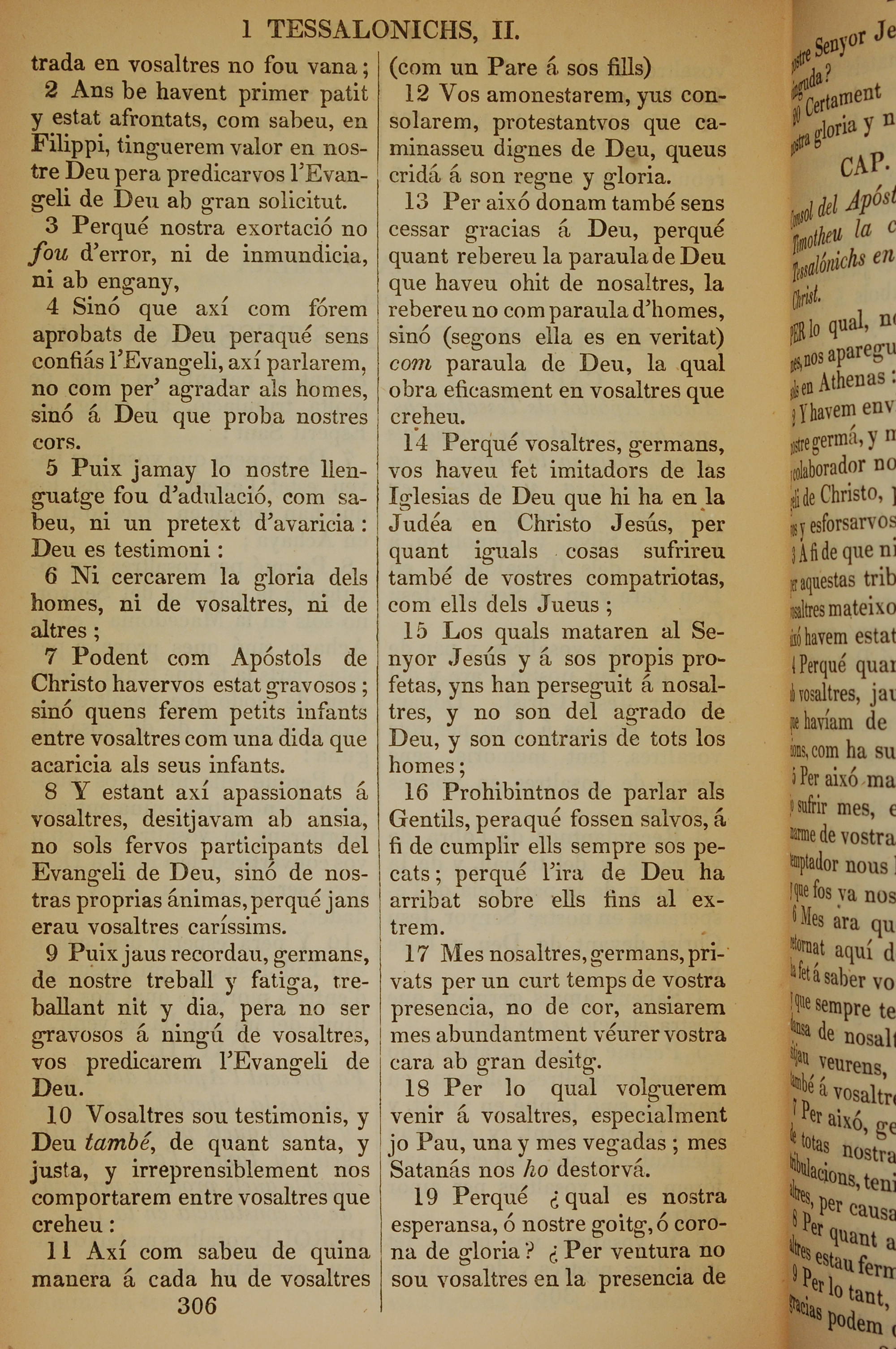 1835年加泰羅尼亞語新約全書 帖撒羅尼迦前書 2 章 2 節到 2 章 19 節