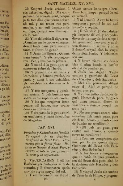 1835年加泰羅尼亞語新約全書 馬太福音 15 章 32 節到 16 章 13 節