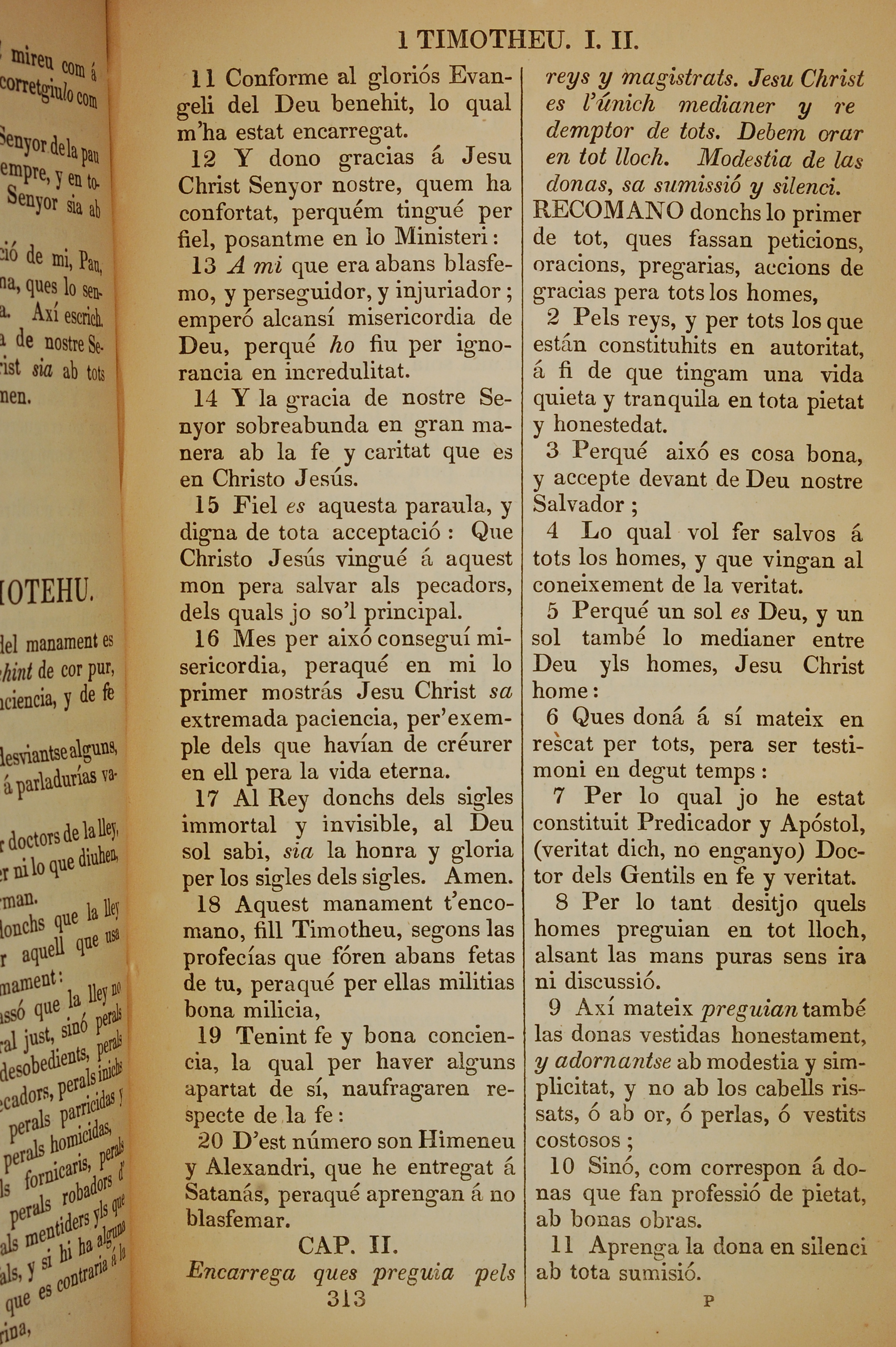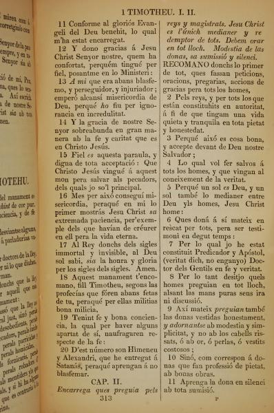 1835年加泰羅尼亞語新約全書 提摩太前書 1 章 11 節到 2 章 11 節