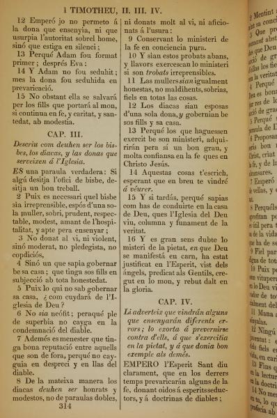 1835年加泰羅尼亞語新約全書 提摩太前書 2 章 12 節到 4 章 1 節