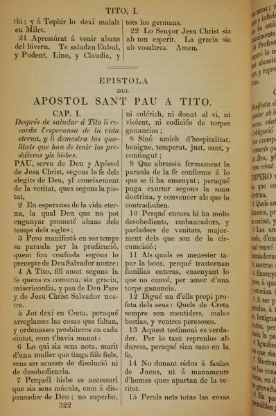 1835年加泰羅尼亞語新約全書 提多書 1 章 1 節到 1 章 15 節