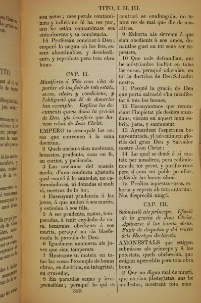 1835年加泰羅尼亞語新約全書 提多書 1 章 16 節到 3 章 2 節