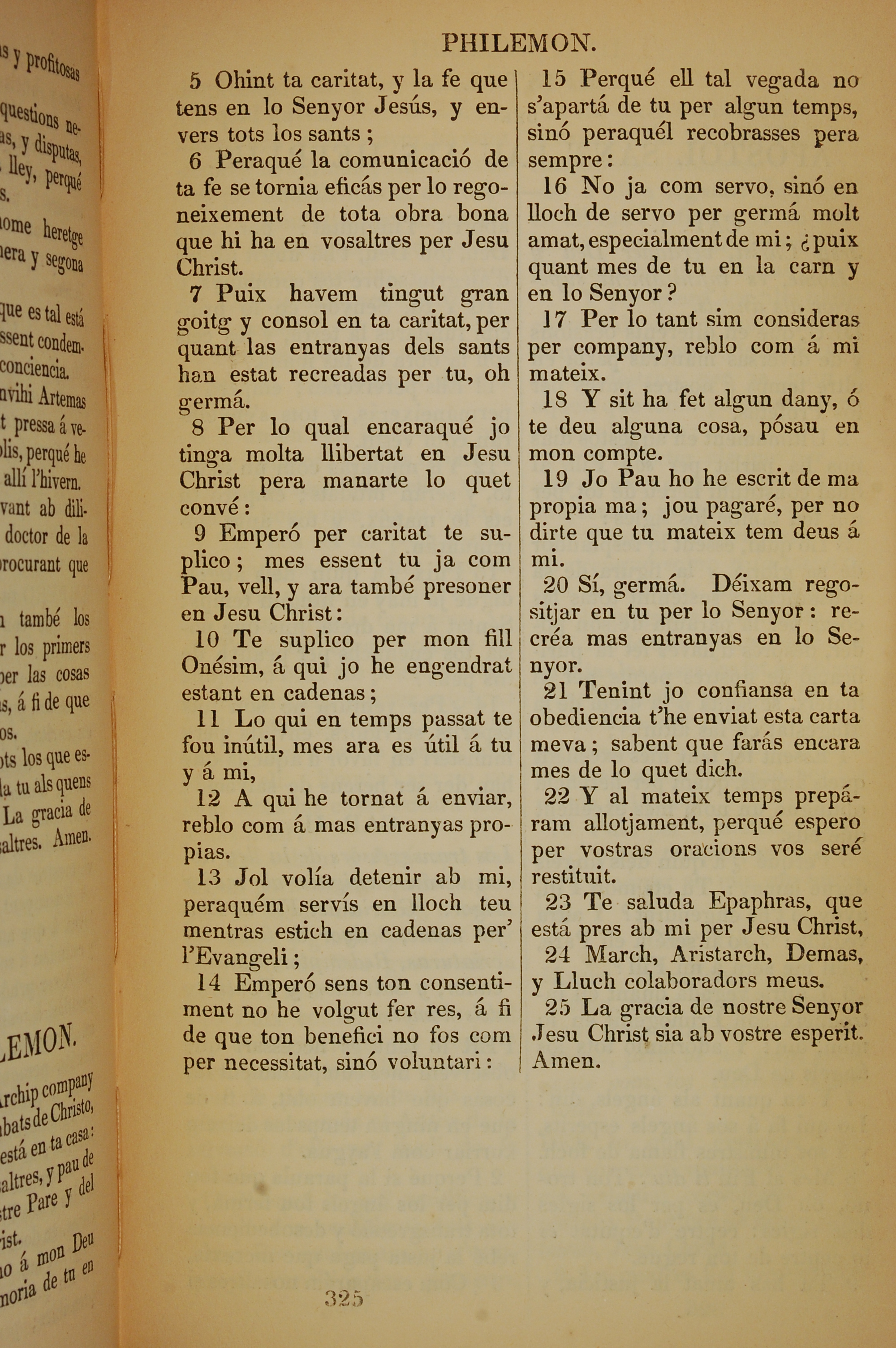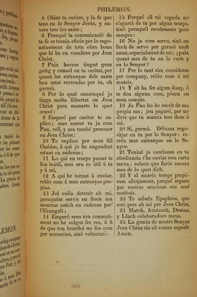 1835年加泰羅尼亞語新約全書 腓利門書 1 章 5 節到 1 章 25 節