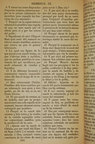 1835年加泰羅尼亞語新約全書 希伯來書 9 章 6 節到 9 章 24 節
